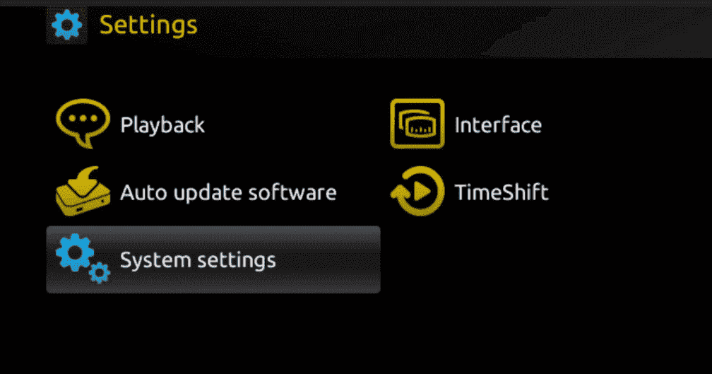 Step 1:Â When the box is being loaded the main portal screen appears. After that click on âsettingsâ, and press the remote button âSETUP/SETâ.